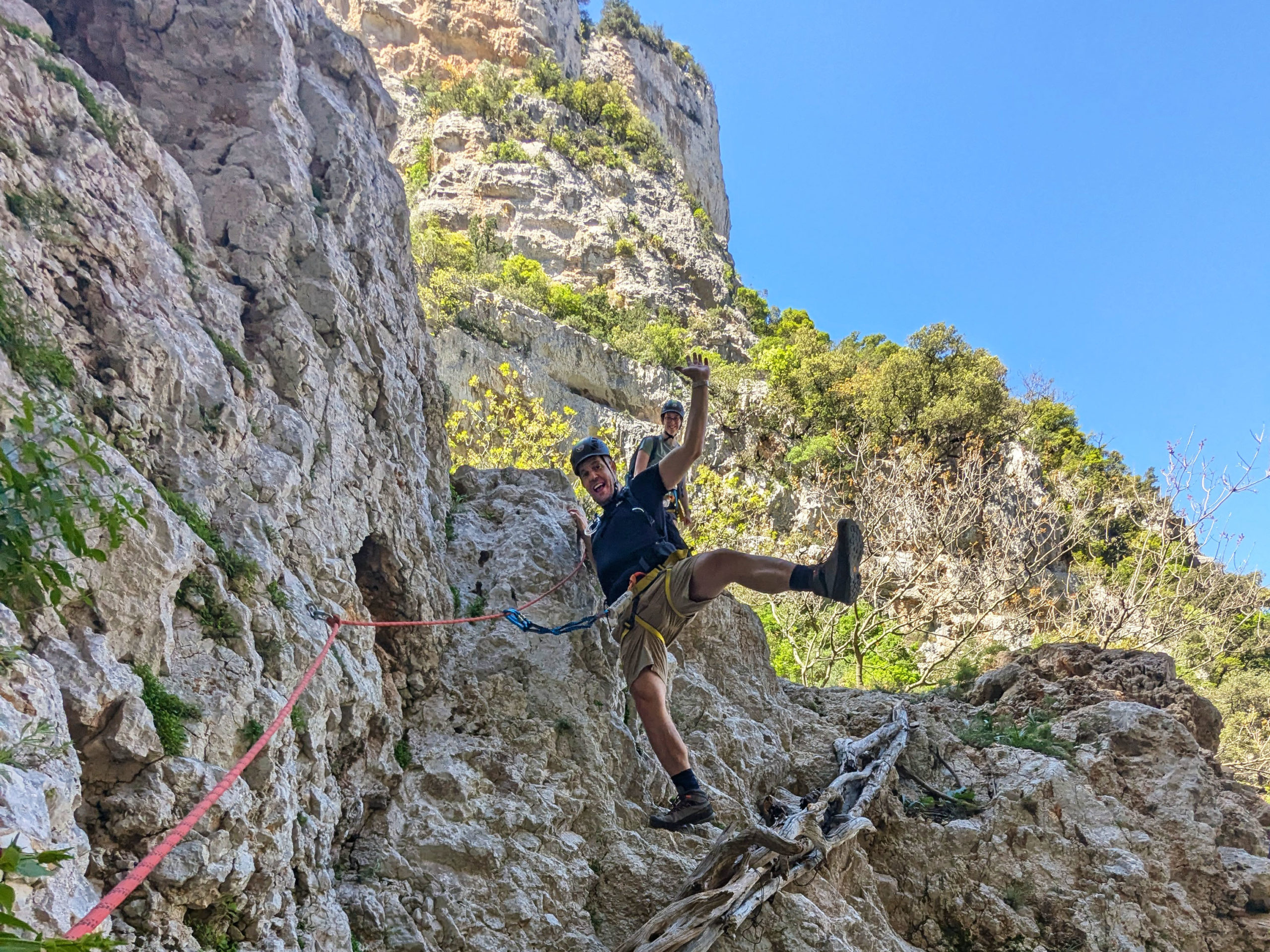 Une bonne gestion de l’eau fait partie intégrante de l’expérience. Une mauvaise géstion peut gâcher l’experience pour tout le groupe. Sur le rocher peut faire très chaud, et gérer des états aigues et évitables de désidratation, peut être compliqué.